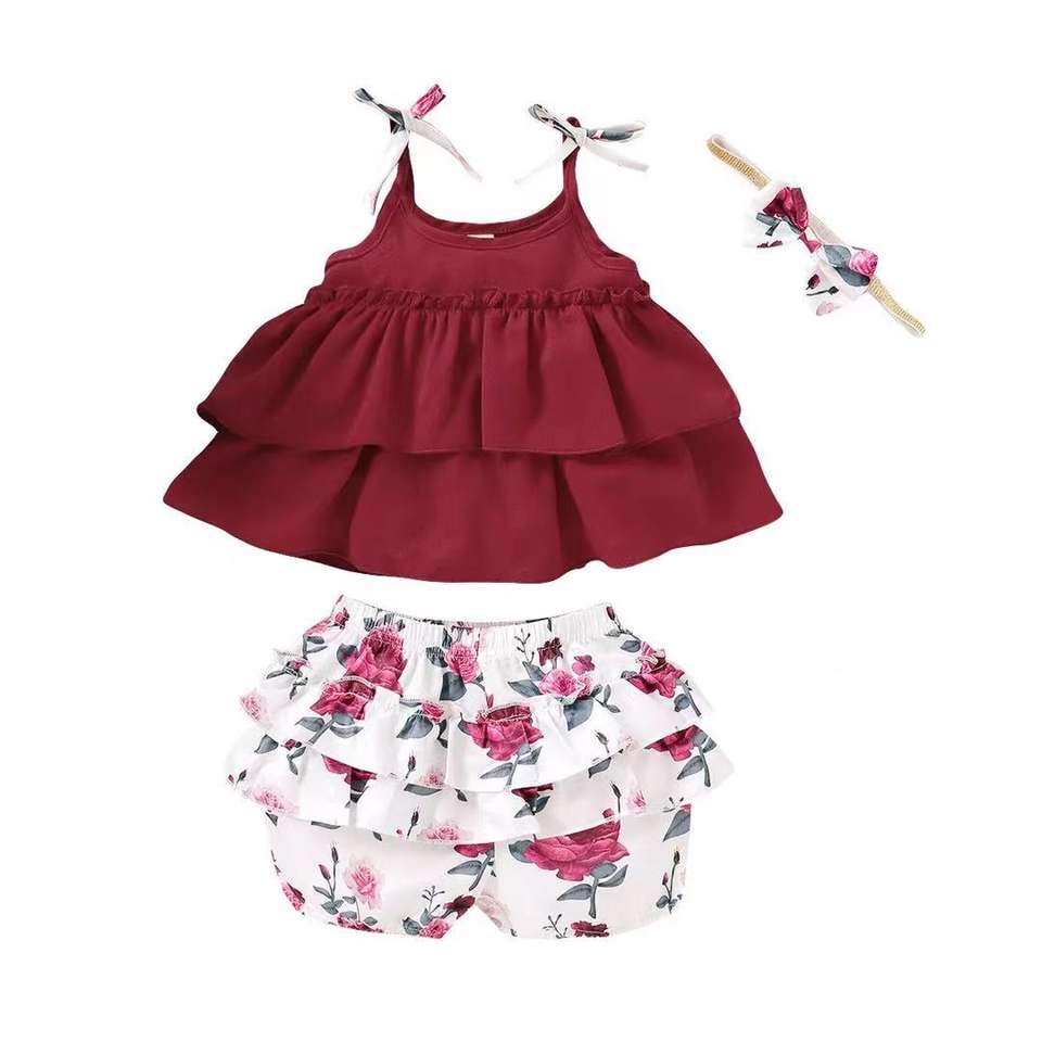 Vêtements pour enfants : Haut à bretelles à volants superposés et short imprimé floral en polyester pour fillette