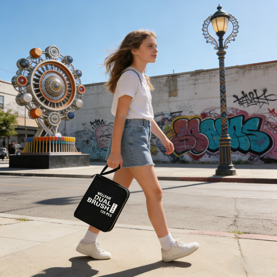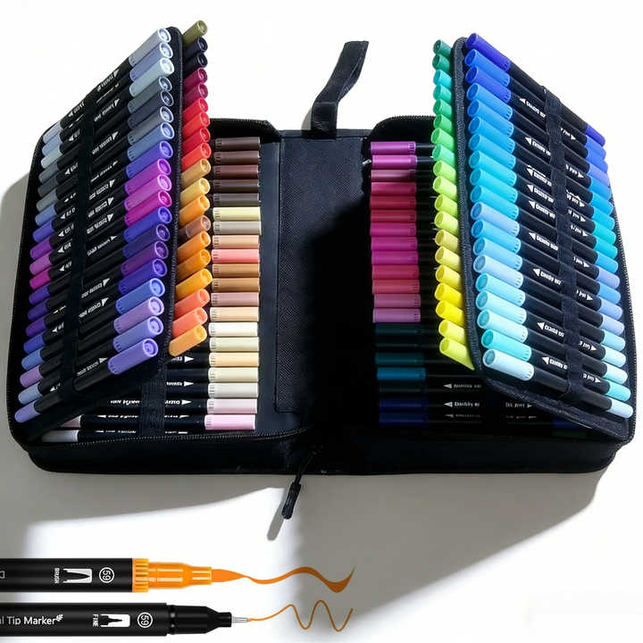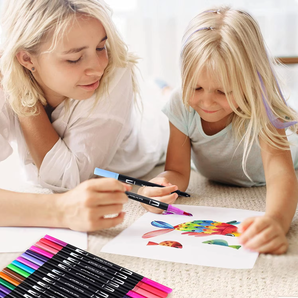 Ensemble de marqueurs artistiques pour enfants avec pinceaux fins, stylos à aquarelle doux, marqueurs, avec un sac de rangement