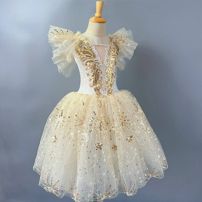 Robe de ballet pour enfants, costume de spectacle long, robe en tulle à manches courtes, modèle de danse du Petit Cygne pour filles