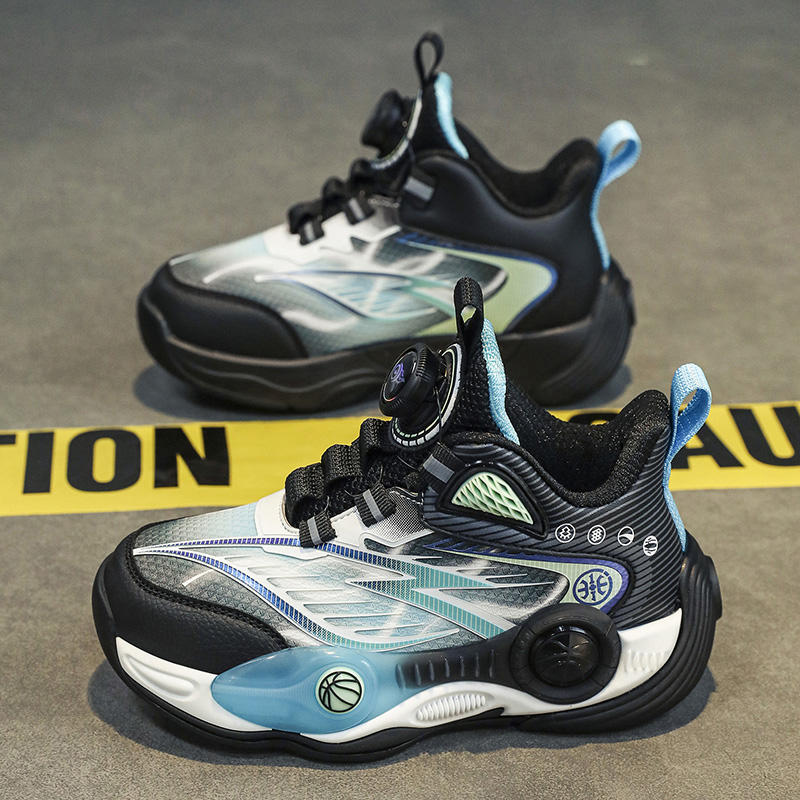 Chaussures de basket-ball pour enfants Tissu extensible Maille respirante Haute/Mi-haute Bouton Semelle intermédiaire en TPR Semelle extérieure en coton Chaussures de sport pour garçons et filles