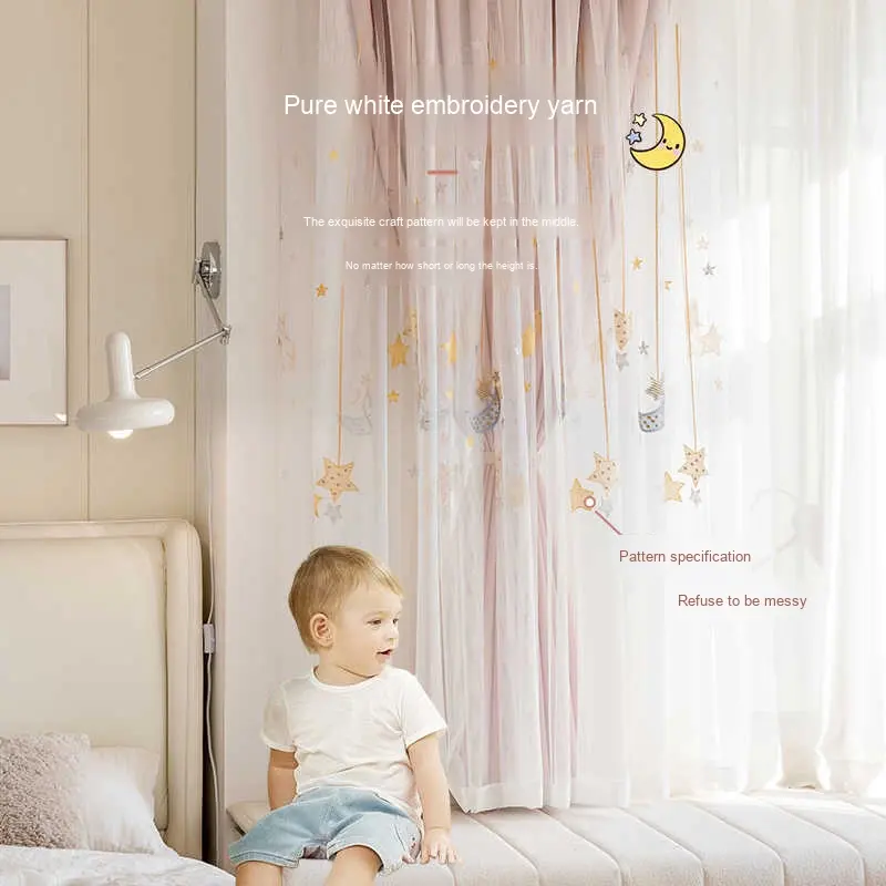 Chambre d'enfant filtrant la lumière intimité rideau transparent dessin animé fille garçon baie vitrée cloison en bois rideaux muraux cantonnières