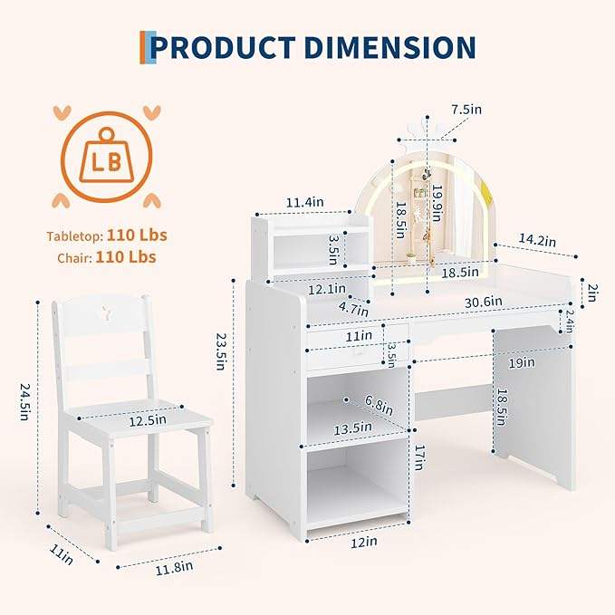 with lights, 2-in-1 desk and chair set, open shelvesFeature
