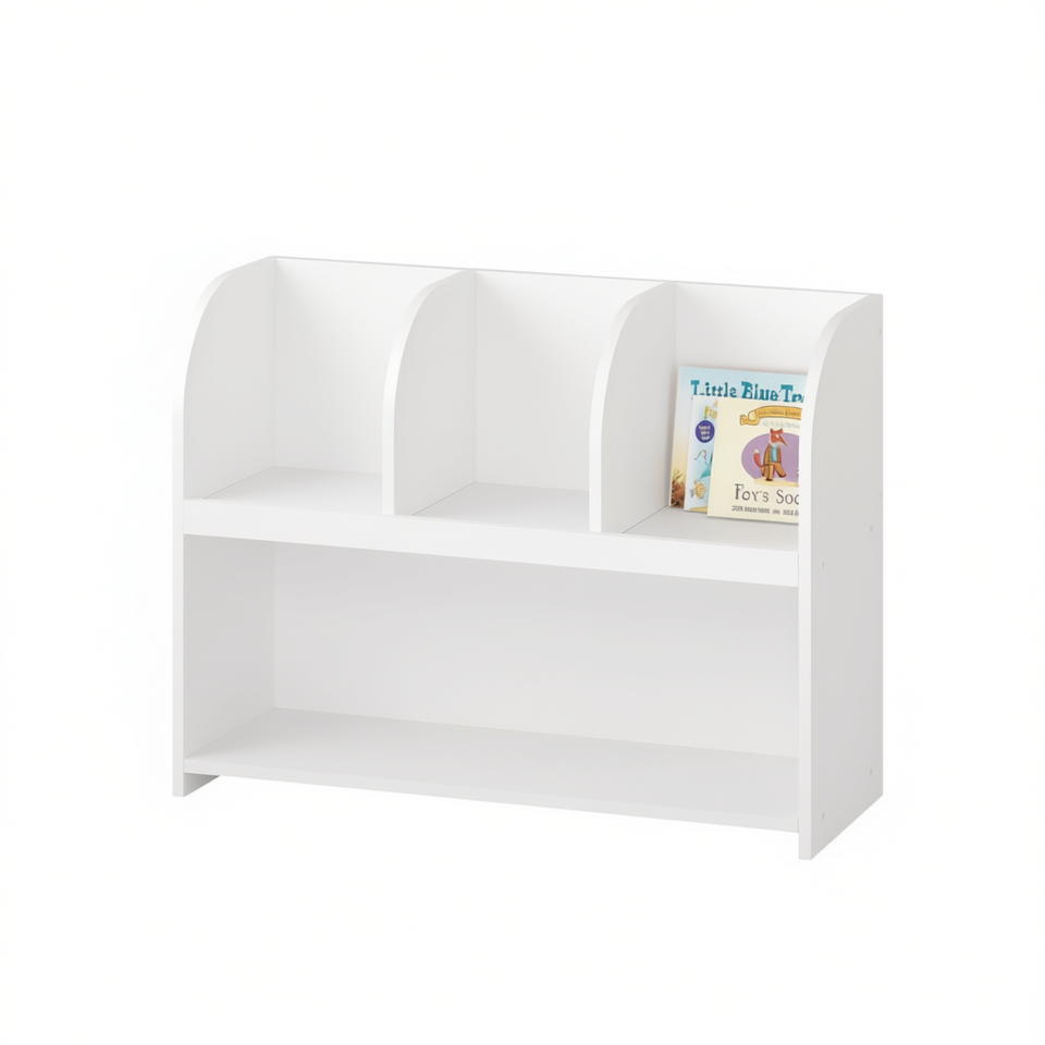 Étagère de rangement pour enfants à 4 compartiments en bois blanc pour chambre d'enfant, salle de jeux, crèche