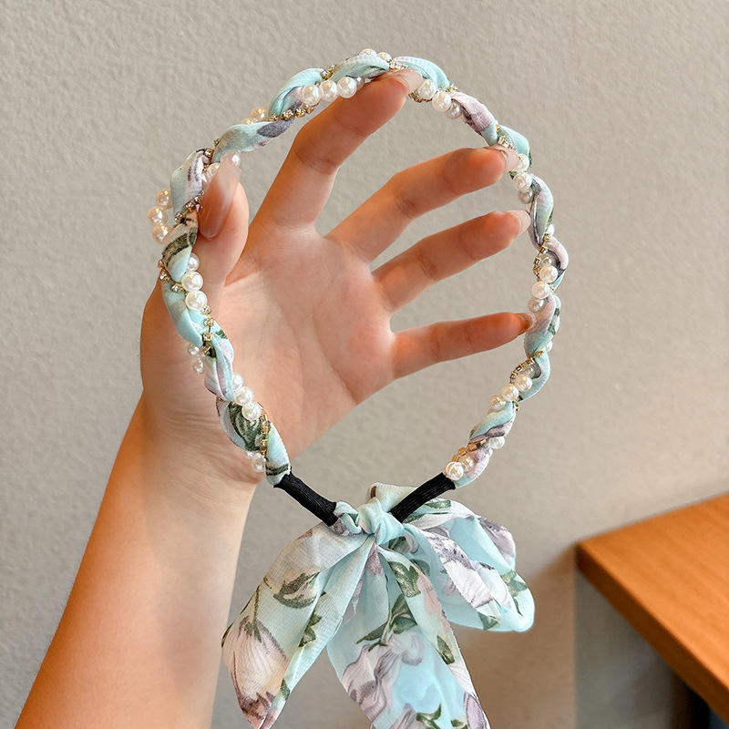 Serre-tête tressé en ruban pour enfants – Foulard à cheveux en perles rayées et fleurs pour femmes, idéal pour les coiffures tressées.