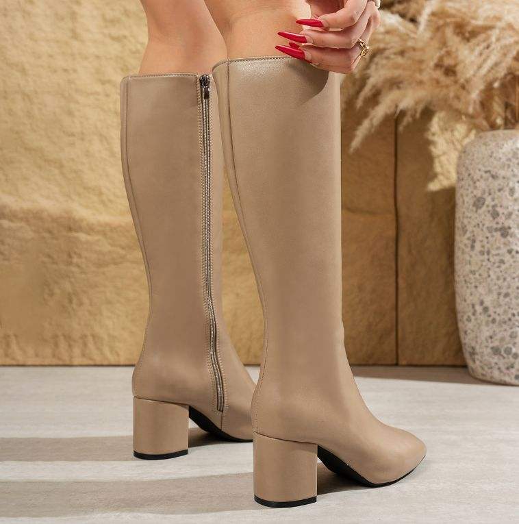 Bottes de mollet pour enfants 2025 automne nouveau petit bout carré européen et américain grande taille 41-42bottes fermeture éclair latérale talons hauts