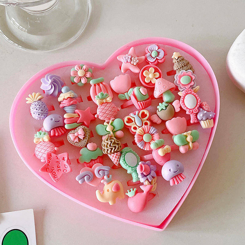 Dessin animé pour enfants Baby Princess anneaux en plastique coffret cadeau réglable pour enfants filles