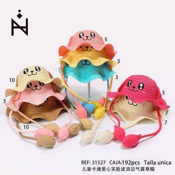Chapeau de paille avec airbag, motif cœur et smiley de dessin animé pour enfants.