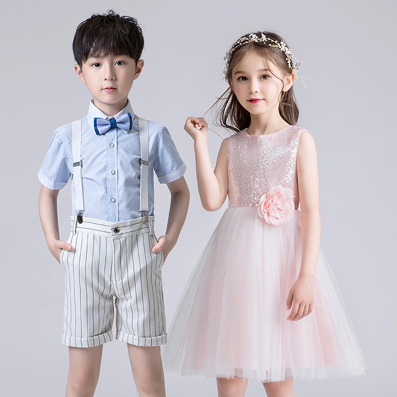 Tenues de spectacle pour chœur d'enfants, robes roses pour concours de poésie et spectacle de danse pour écoles primaires, collèges et maternelles