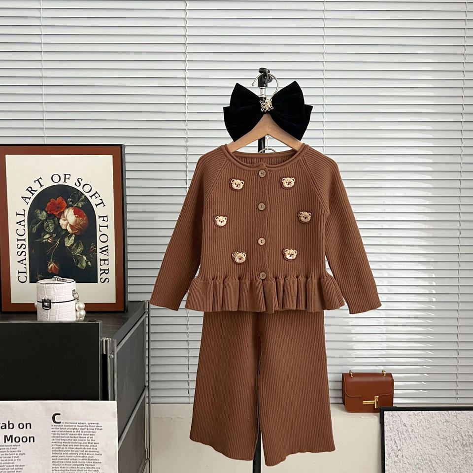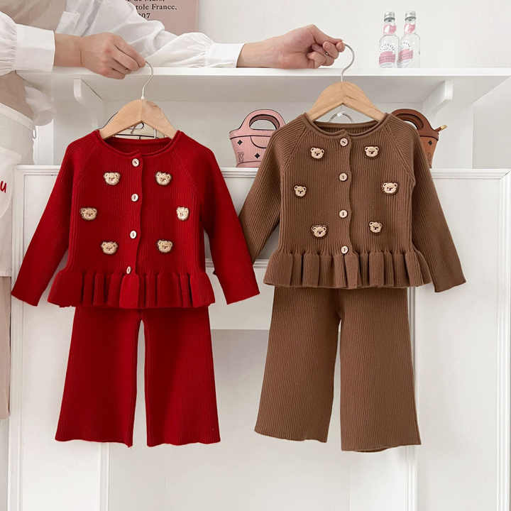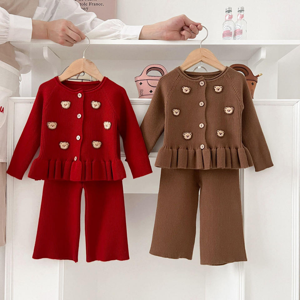 Ensemble de vêtements pour enfants Style coréen automne pull costume doux ours à manches longues Cardigan pantalons décontractés pour bébé filles