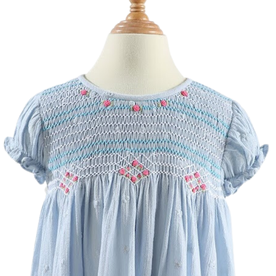 Children's Clothing Girl's Clothing Girls Dresses Wholesale Girl Smocked Dress for Kids Blue Short Cotton Customized Design