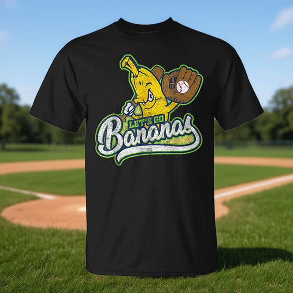 T-shirt promotionnel pour enfants au design mignon de banane et de balle de baseball - Let's Go Bananas!