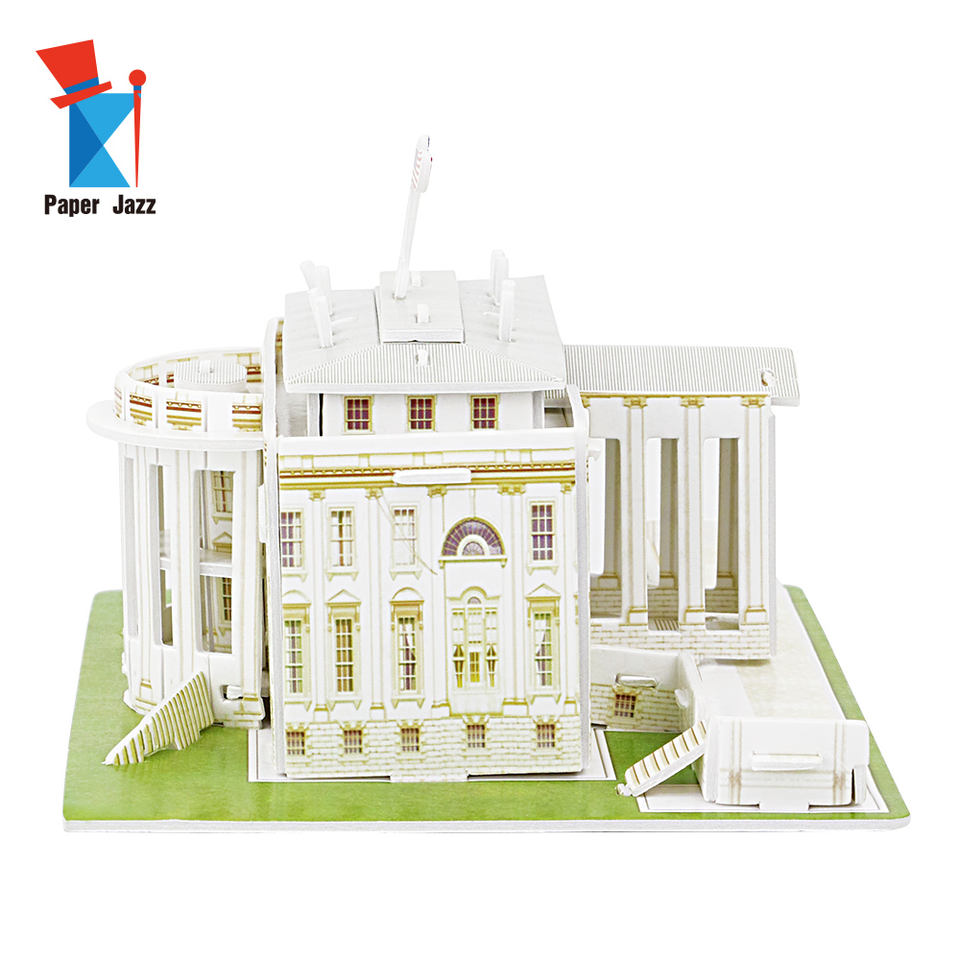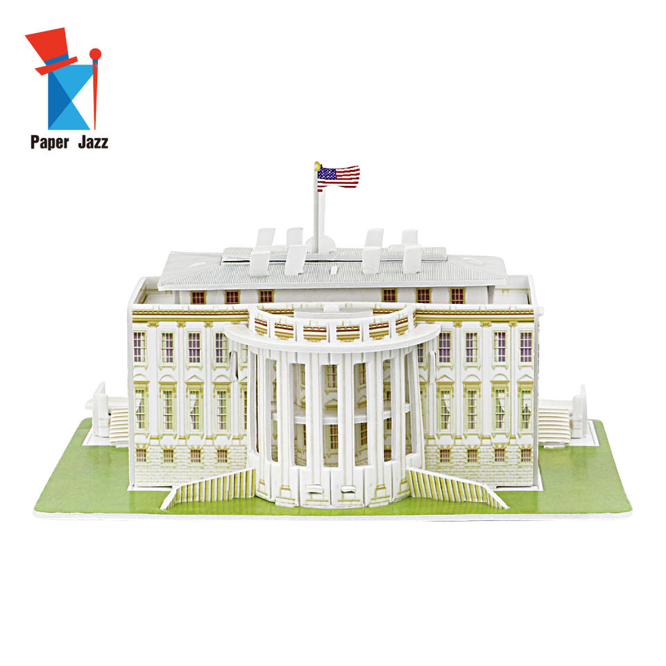 Description:Puzzle 3D en papier mousse pour enfants, jouet de bricolage, maison blanche