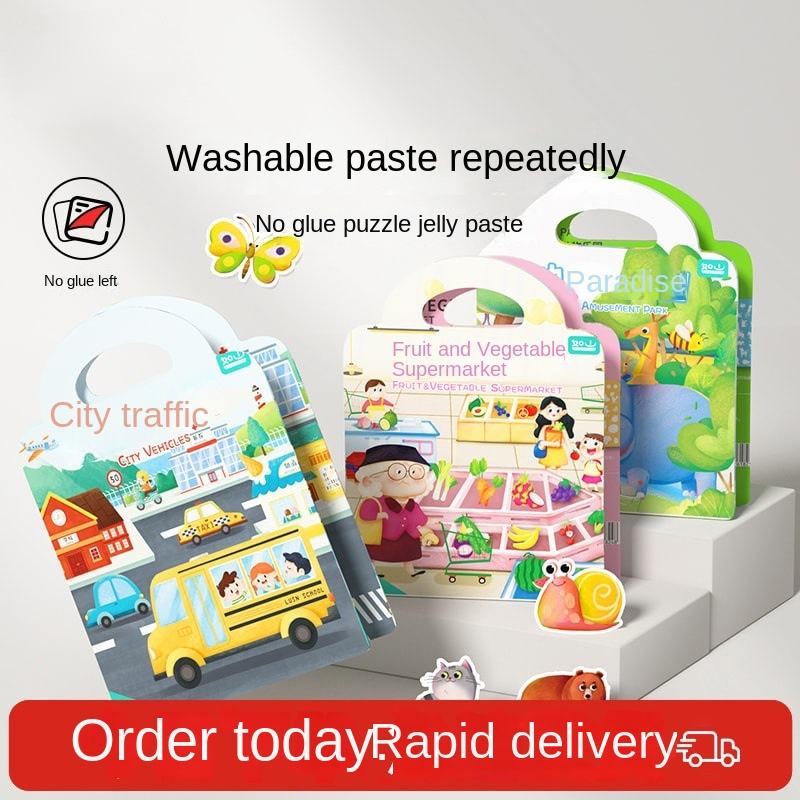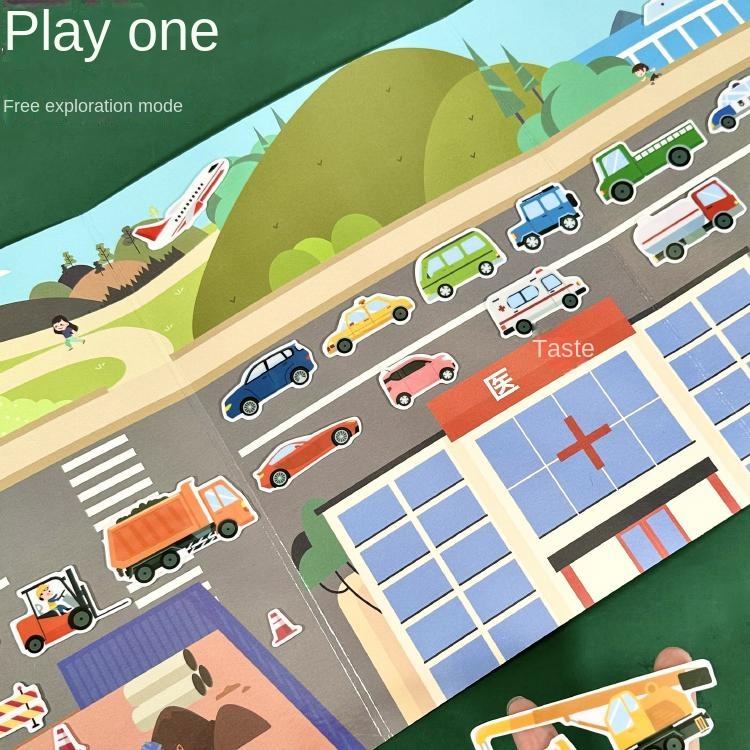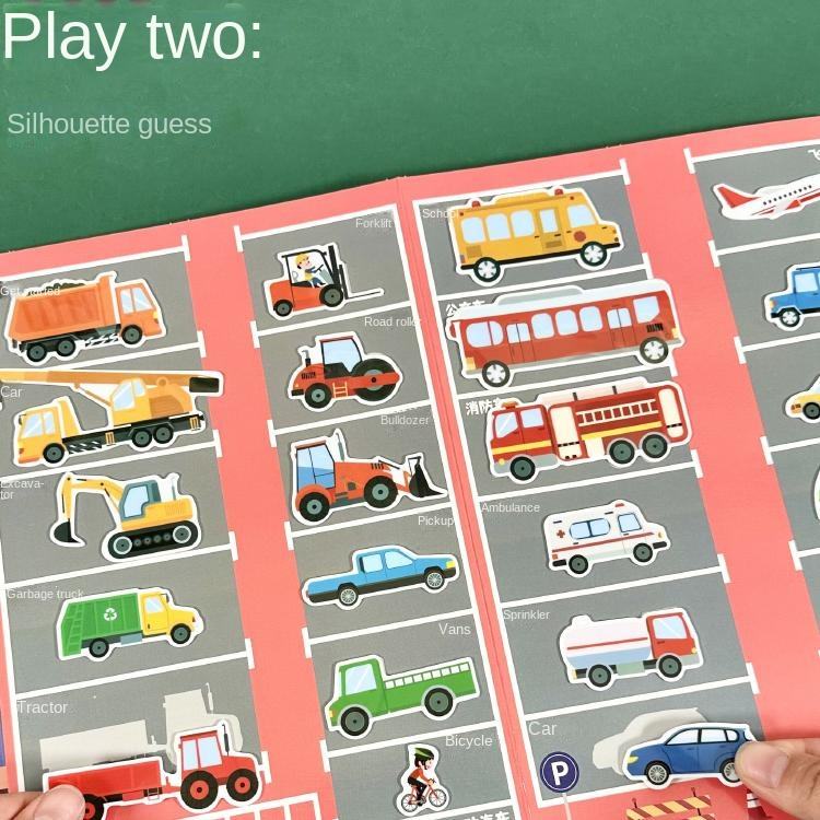 Livre d'autocollants en gel amusant pour enfants de 0 à 3 ans, autocollants résistants aux déchirures, véhicules d'ingénierie, jouet éducatif