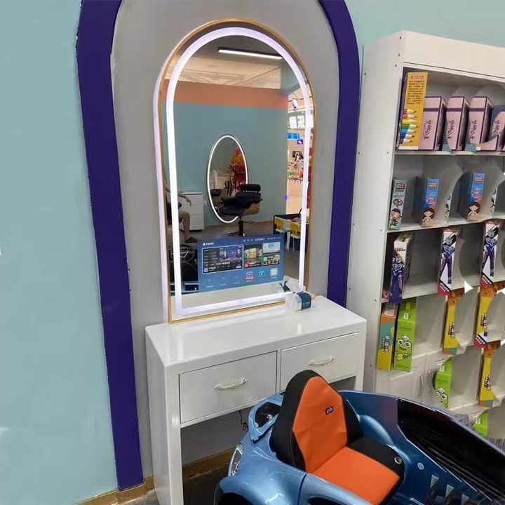 Miroir de coiffure pour enfants avec TV Cartoon Smart Android Miroir de coiffure Miroir de coiffure unilatéral pour enfants Salon