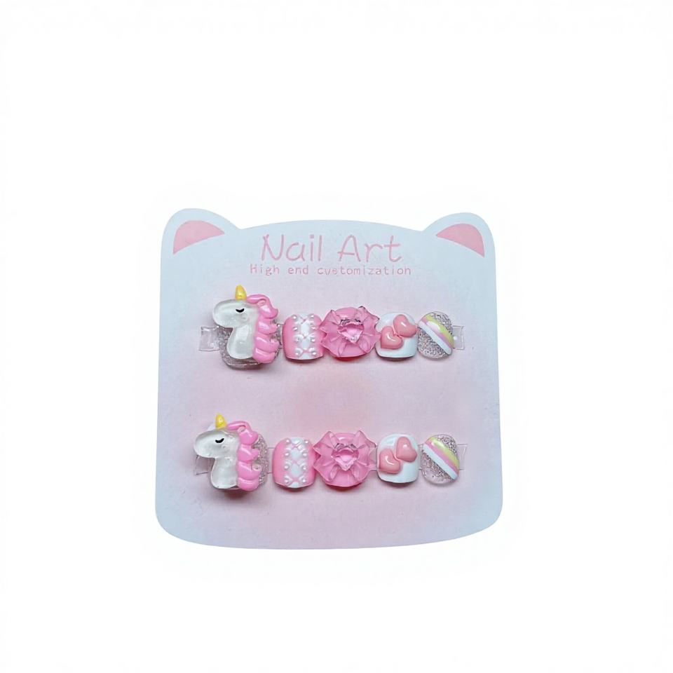 Ongles press-on détachables pour enfants, style français, mignons, dessin animé, My Little Pony, licorne, faits à la main