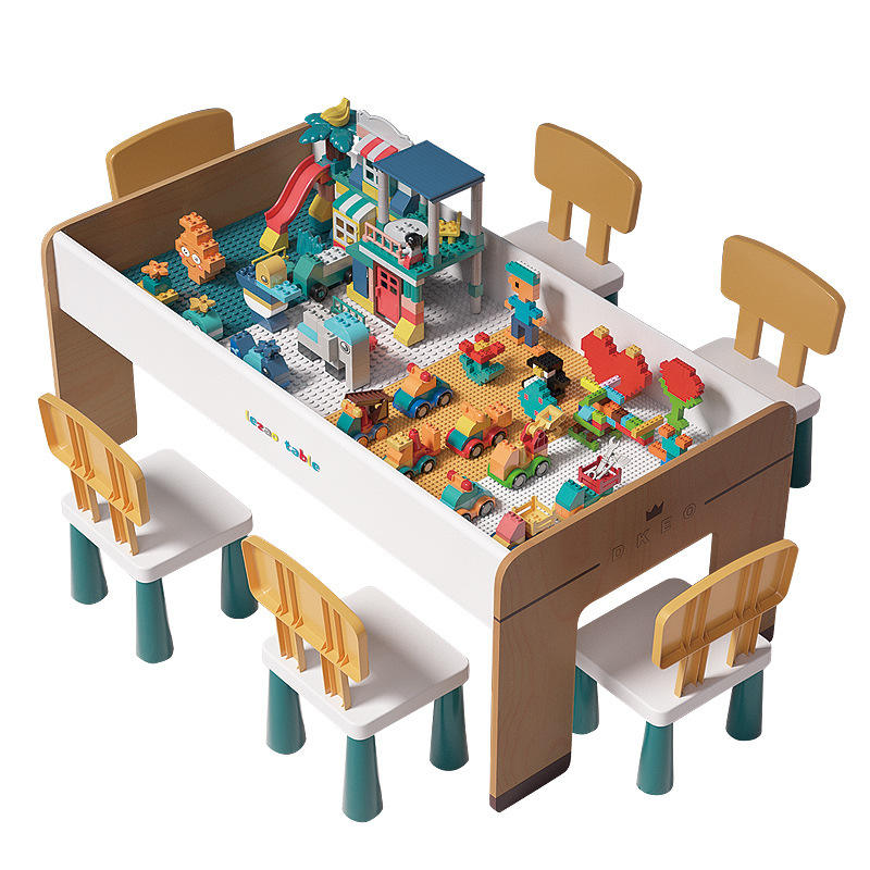 Table de construction multifonctionnelle en bois massif pour enfants (0-2 ans), compatible avec les granulés de taille standard, jouet éducatif d'apprentissage