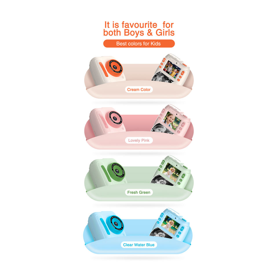 Appareil photo instantané pour enfants, mini imprimante photo, 48MP, vidéo 1080p, écran 2,4'', capteur MOS CMOS, MP3, support MicroSD, garantie 1 an