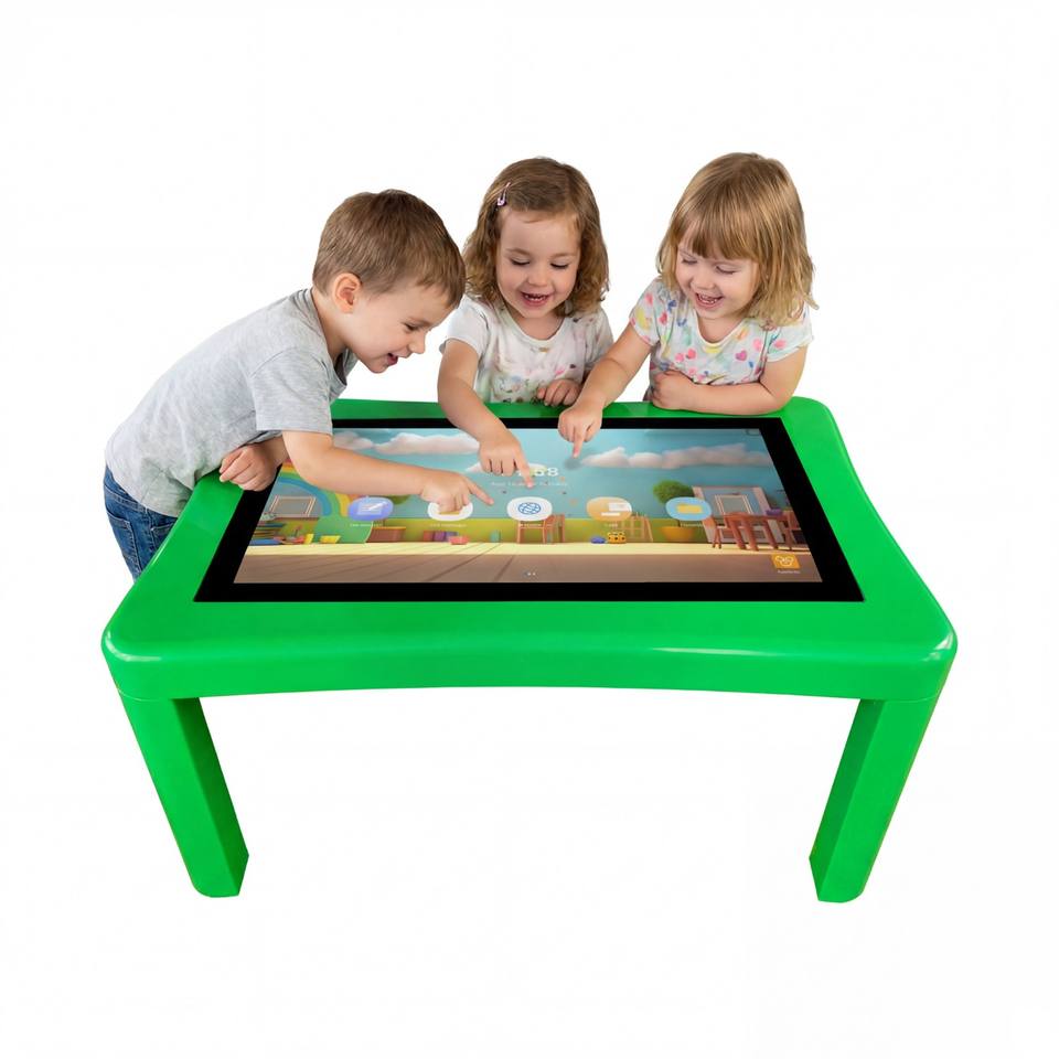 Table de jeu interactive tactile pour enfants avec écran multi-touch et affichage d'animations éducatives pour l'apprentissage