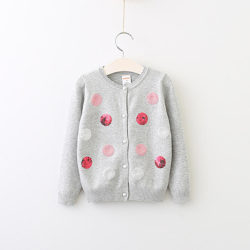 Pull cardigan pour enfants de style coréen, couleur rose, à pois brillants, fabriqué en Chine