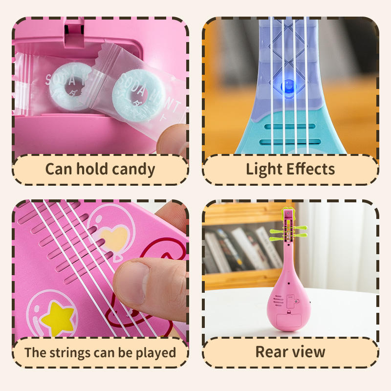 Instrument de musique de simulation en plastique pour enfants, mini jouet à quatre cordes pour les enfants de 3 à 7 ans, guitare musicale pouvant contenir des bonbons