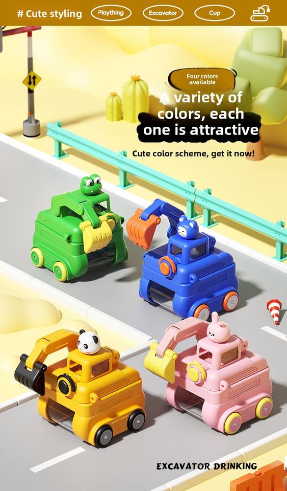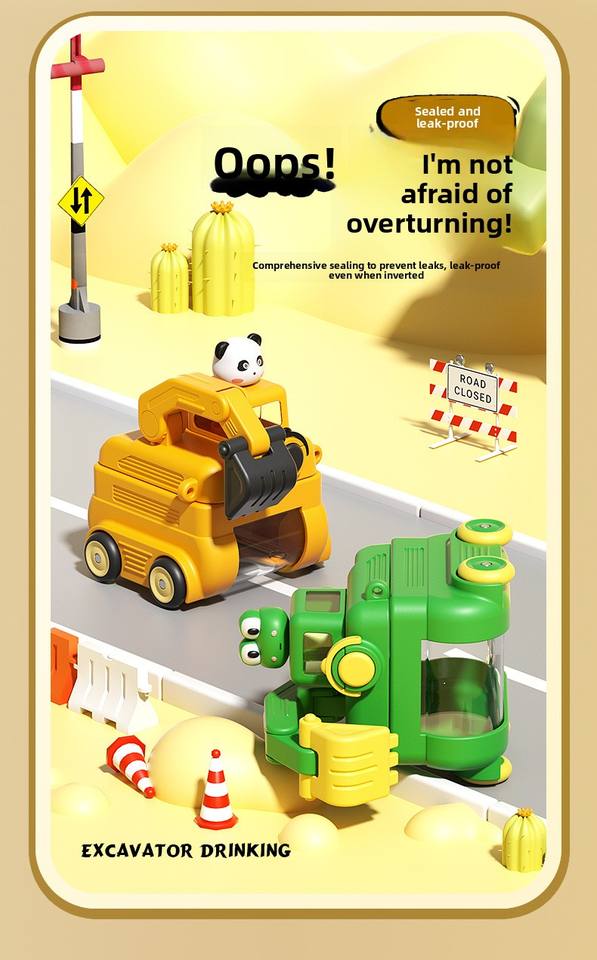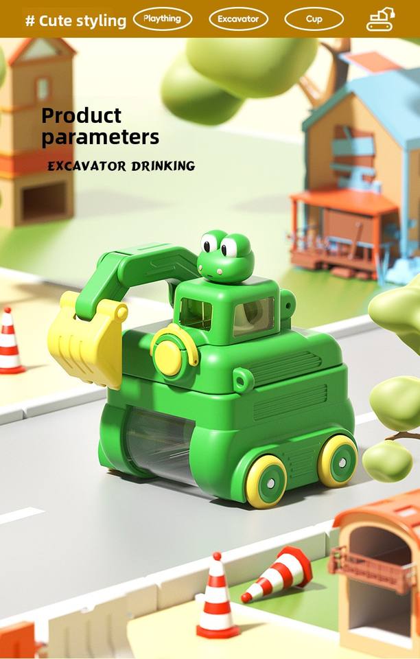 Gobelet à paille pour enfants en forme de mini-excavatrice, nouveau style créatif, unisexe, double couche, motif dessin animé, jouet excavatrice pour bébé, cadeau