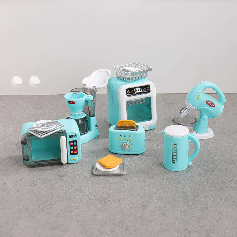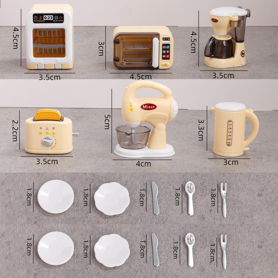 Ensemble de cuisine miniature pour enfants avec des petits appareils électroménagers simulés comme une machine à café, une grille-pain et un four
