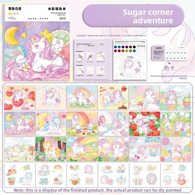 Livre de coloriage à l'eau pour enfants avec pigments, art graffiti, dessin animé, éducation précoce, puzzle, dessin solide, vente en gros