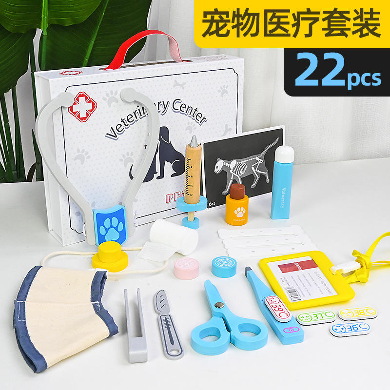 Simulation en bois pour enfants jeu de rôle Kit de médecine pour animaux de compagnie éducatif vétérinaire jeu médical maison docteur ensemble jouets pour garçons filles