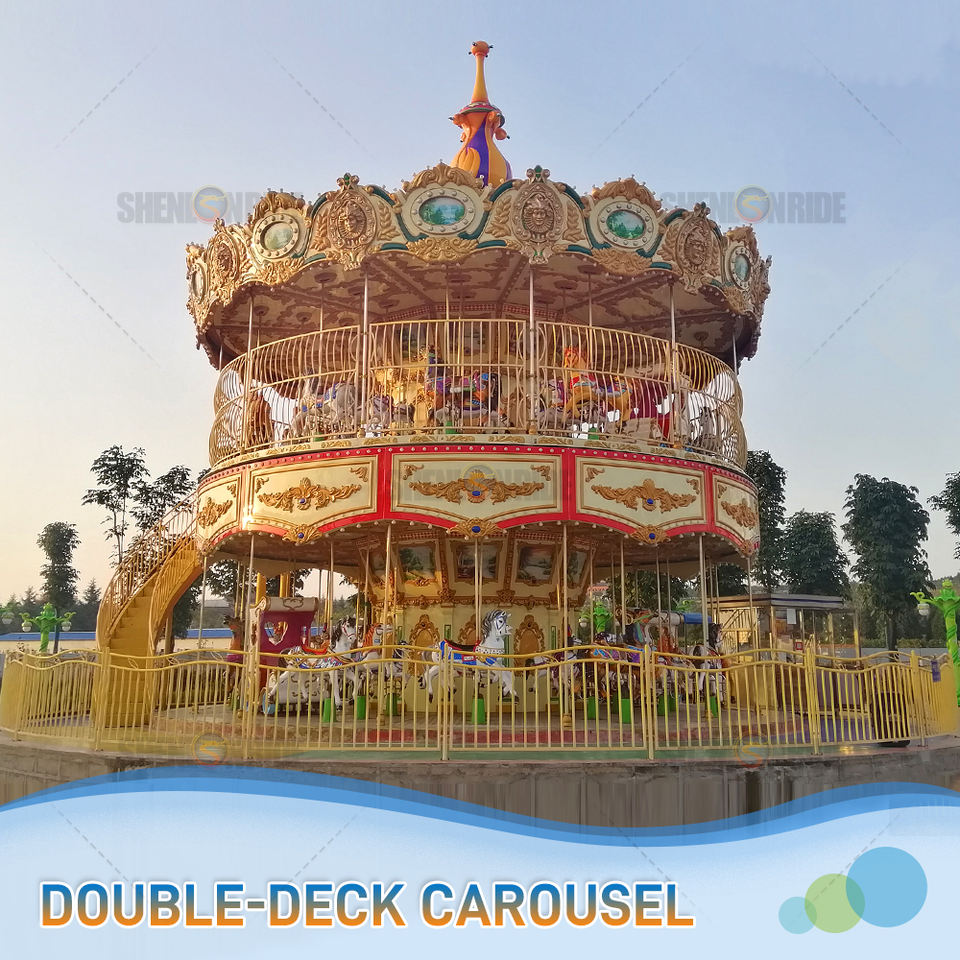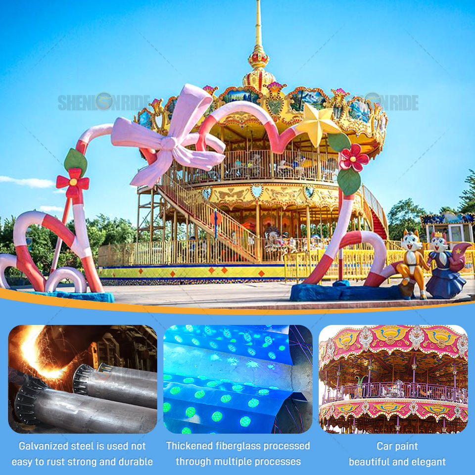 Animal animé pour enfants Merry Go Round avec 16 personnages en fibre de verre et auvent