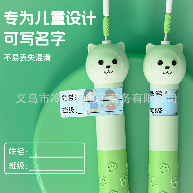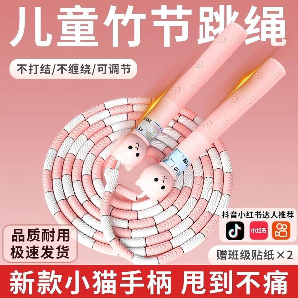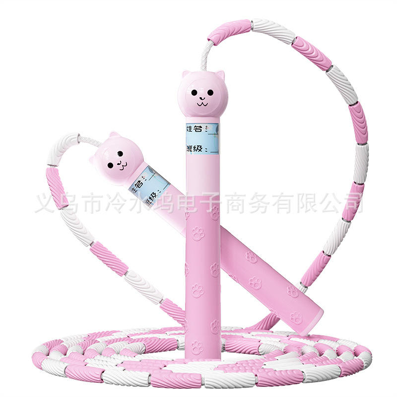 Corde à sauter en bambou pour enfants, longueur réglable de 2.8m, perles souples pour la maternelle à la 1ère année, avec poignée en forme de tête de chat