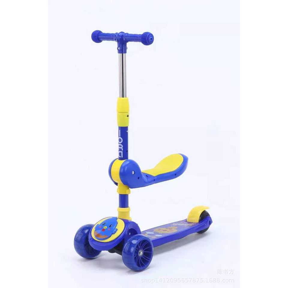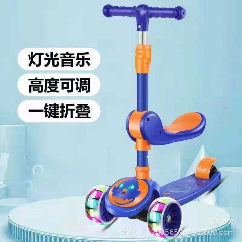 Childrens Foldable 3 In 1 Scooter With Music Tricycle For Kids Age 3 6 Years Blue Yellow Color Mix Height Adjustable