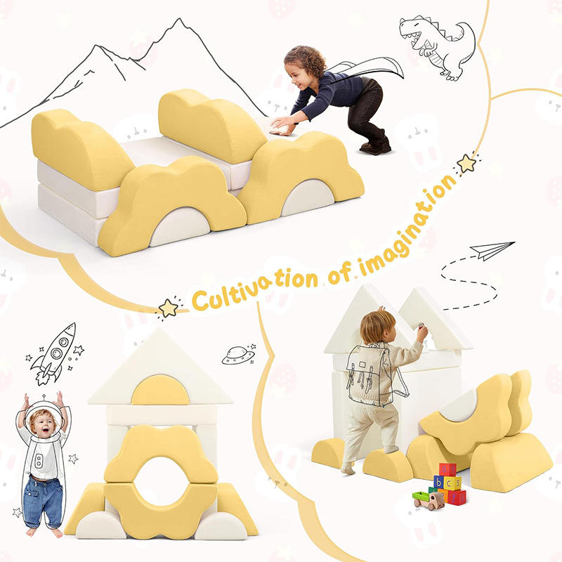 Childrens Play Sofa Set Modular Soft Foam Furniture For Kids Room With Storage And Stool 2 Seater Yellow White Design