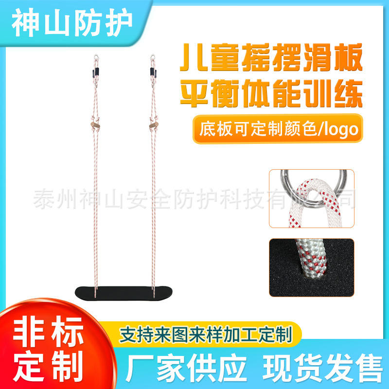 Balançoire pour enfants, skateboard à bascule noir givré, corde en polyester épaisse, capacité de charge de 200 kg, aire de jeux intérieure et extérieure