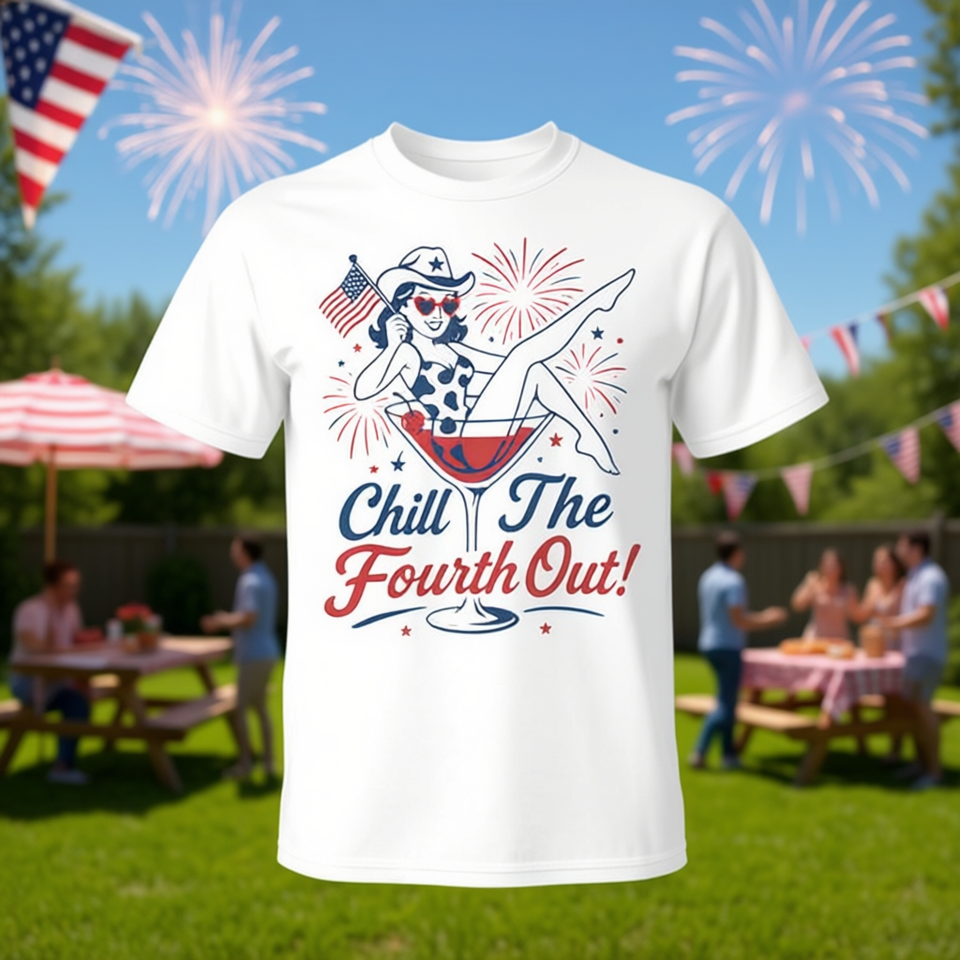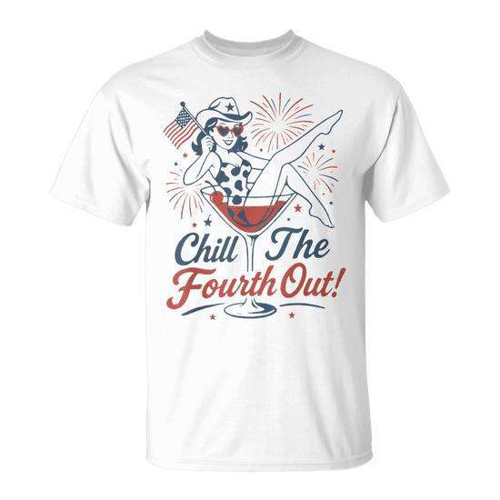 T-shirt Chill The Fourth Out pour le 4 juillet, design de feux d'artifice rouge, blanc et bleu