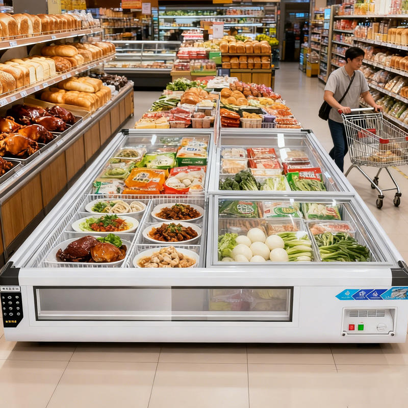 Nom du produit:Congélateurs à poitrine plus frais, supermarché, îlot, réfrigérateur d'affichage, magasin