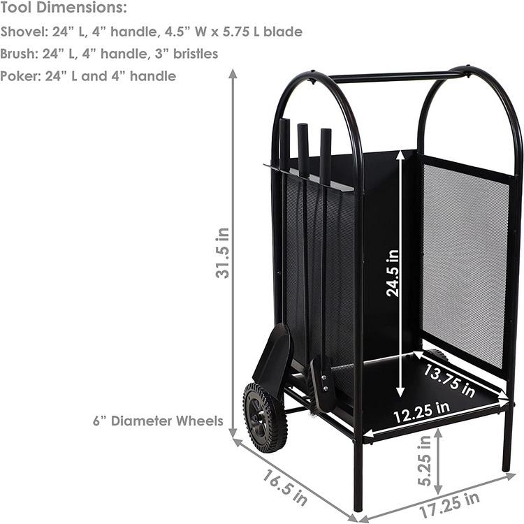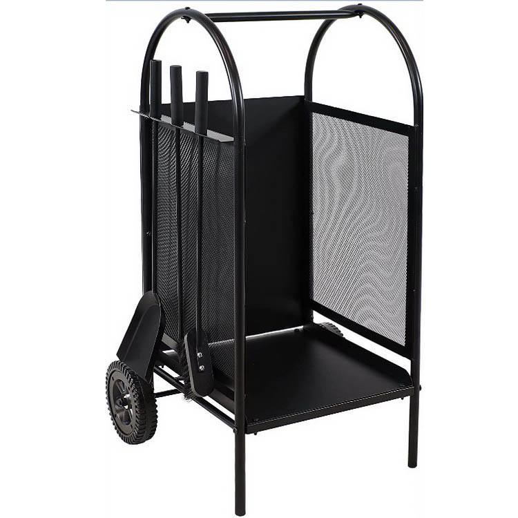 Accessoire de cheminée décor maison roues de transport de bûches panier en bois support de poêle à bois ensemble d'outils de cheminée avec chariot de rangement de bois de chauffage