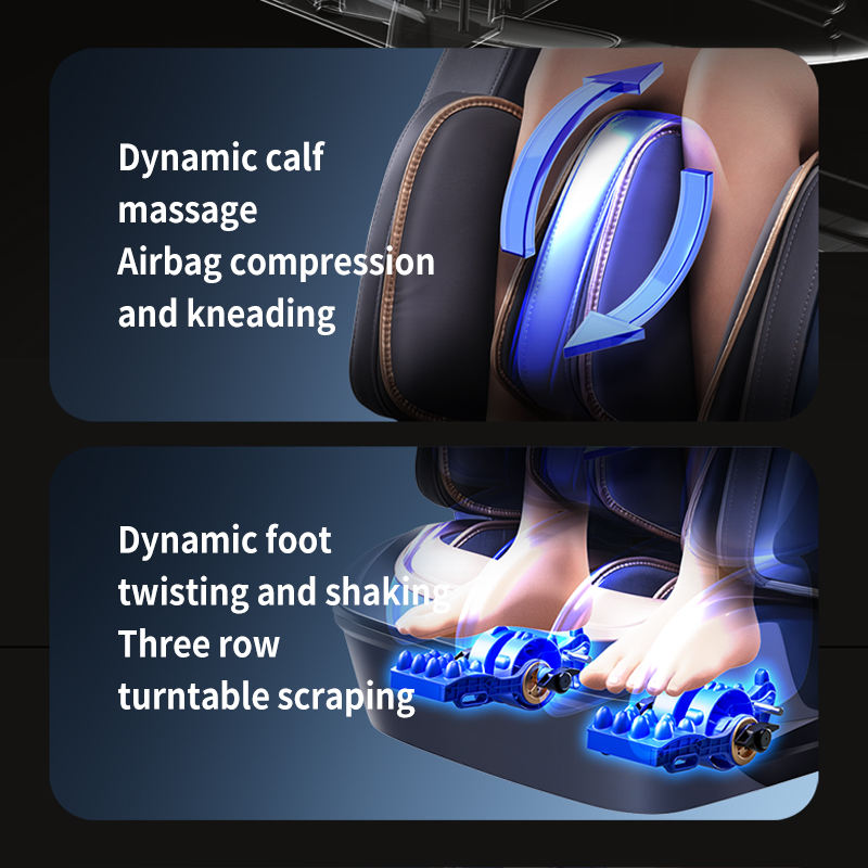 Chaise de massage 3D RENOVACARE PRMC-F04 de Chine, fonction musicale, gravité zéro, moteur puissant, couverture complète du corps par airbag, pieds