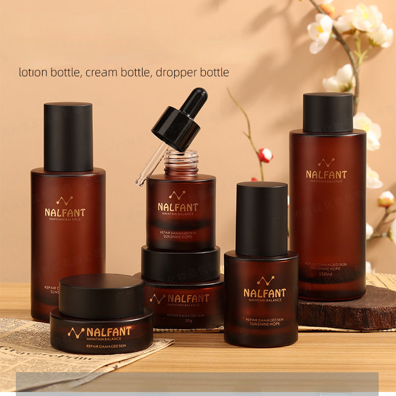 Chine Prix Compétitif Flacon Compte-gouttes Cosmétique Transparent Emballage Kit Soins de la Pe Peau Pot pour Lotion Tonique Parfum Huile Crème