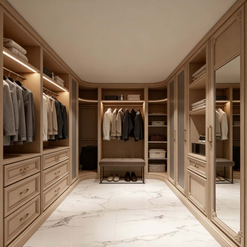 China Custom High-Quality Wooden Walk-In Closet Bedroom Wardrobe Full-House Integrated Storage Cabinet with Mirror Door