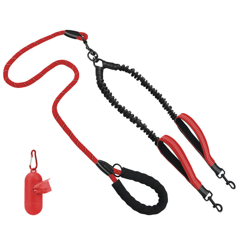 Chine usine 5 en 1 grenouille clip flexi réfléchissant extérieur double chien laisse chaîne pour chiens