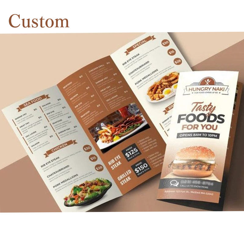 Chine Usine Pas Cher Papier Couché Personnalisé QR Code Restaurant Menu Impression Dépliant Dépliant Impression