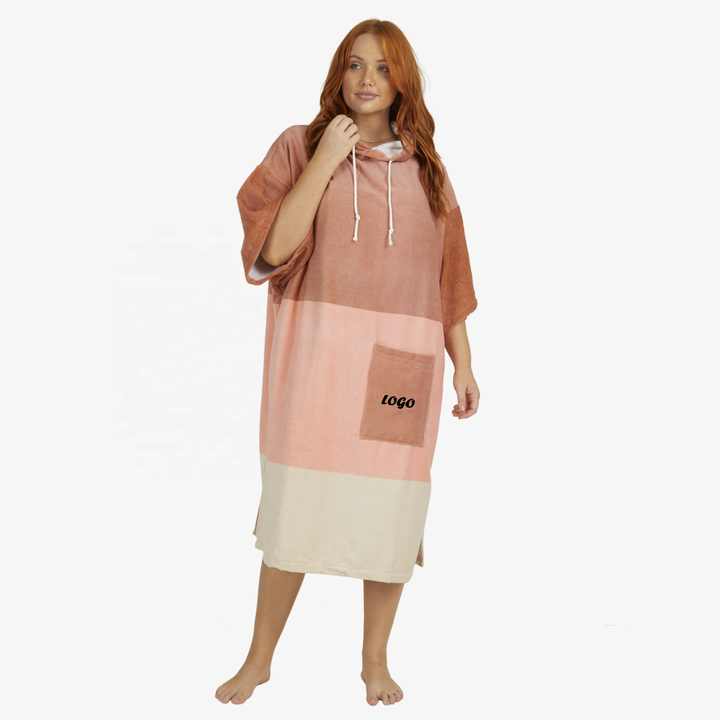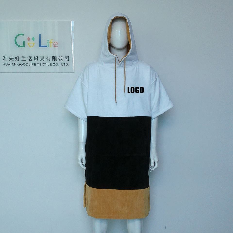 Chine Usine Personnalisé Contraste Couleurs À Capuche Plage Surf Éponge À Langer Robe Serviette Poncho pour Enfants Adultes