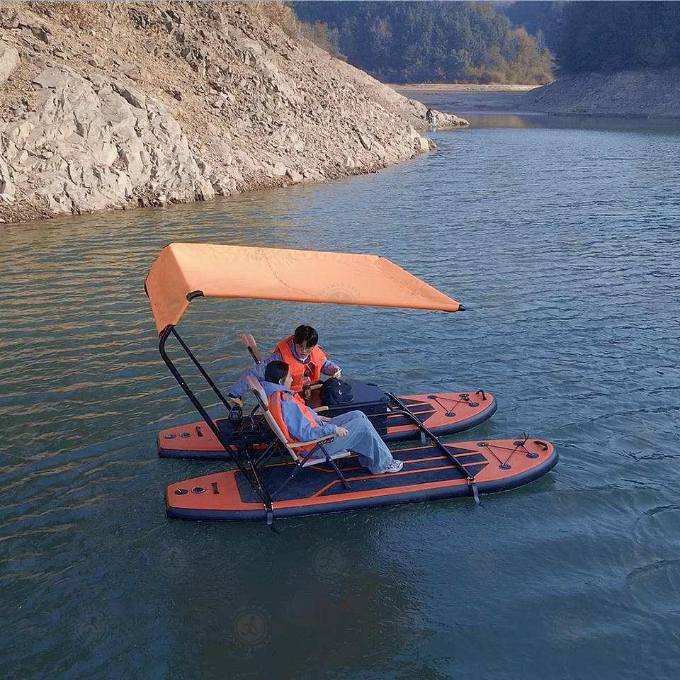 Catamaran gonflable personnalisé d'usine de la Chine avec moteur électrique, bateau de sièges tandem avec auvent de parasol