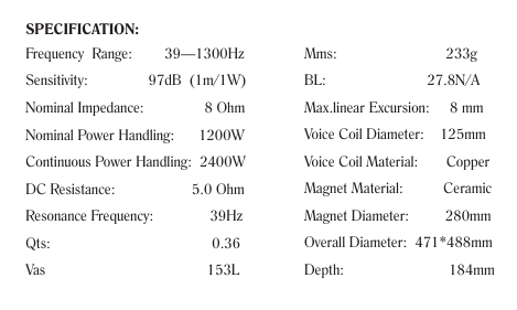39-1300 HzRéponse en fréquence