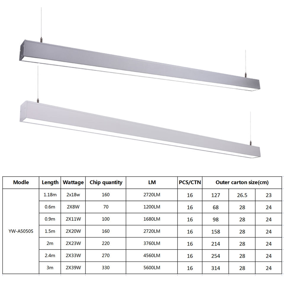 Luminaire linéaire LED suspendu, vente directe d'usine en Chine