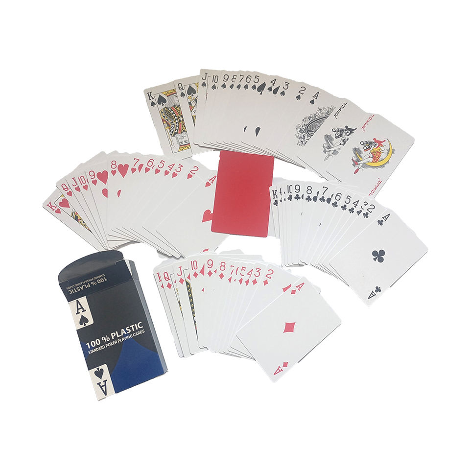 Cartes de club de poker en papier durable personnalisées en usine de Chine cartes à jouer étanches dans une boîte en plastique pour jeux de table de casino