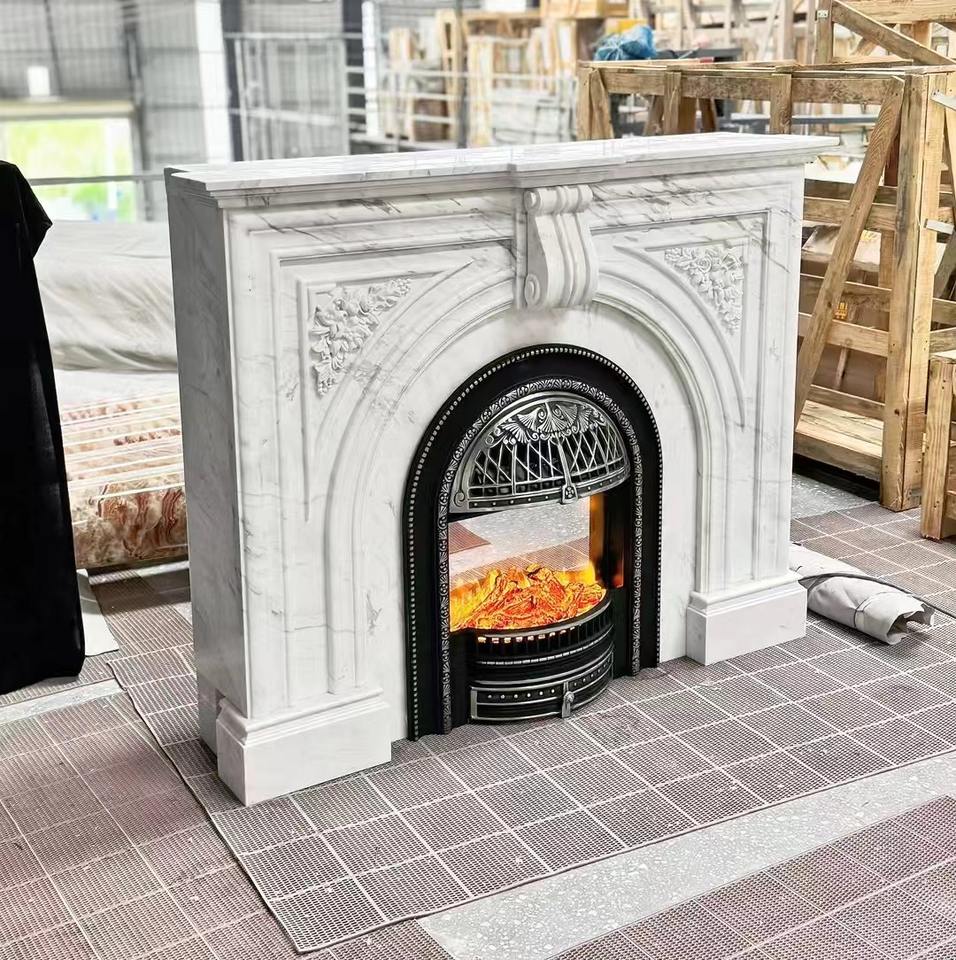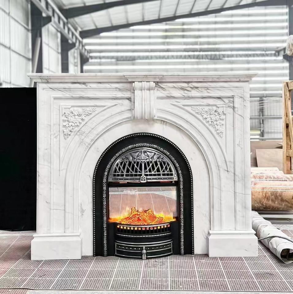 Cheminées en marbre de l'usine chinoise Cheminée en marbre gravé Mentel Calacatta Cheminée en marbre blanc pour la maison Salon