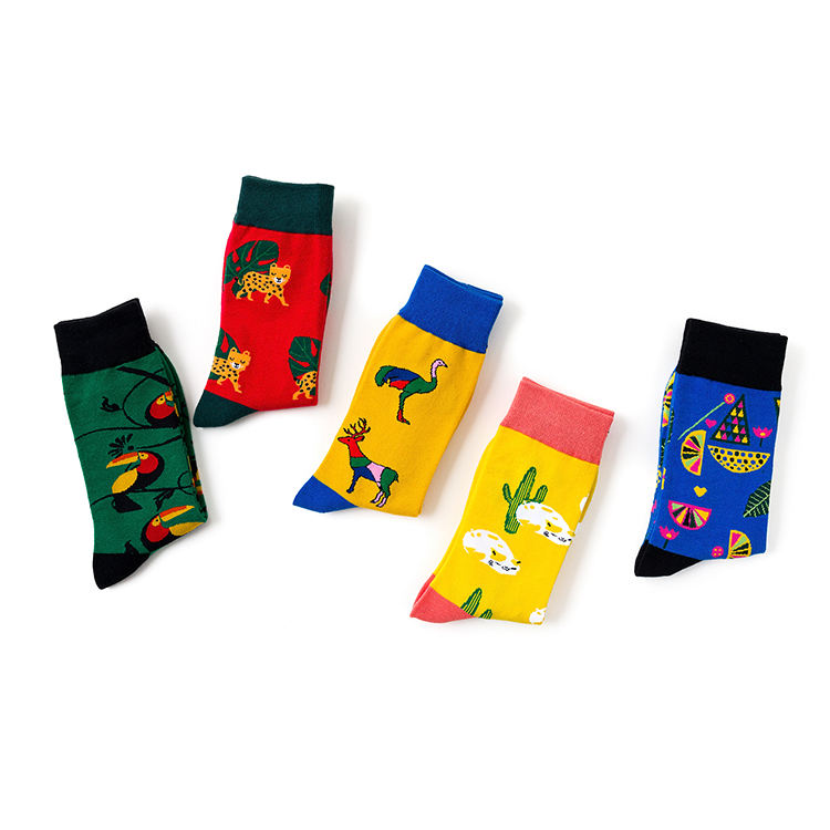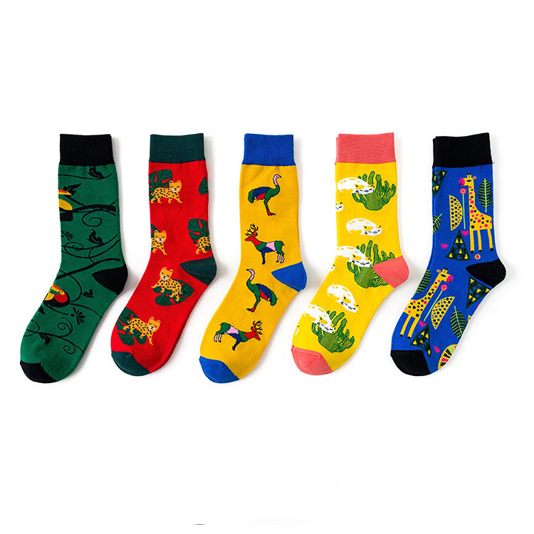 Chine Usine Mulit Couleur Faites Votre Propre Conception Flamingo Girafe Animal Coton Coloré Drôle Hommes Tube Chaussettes