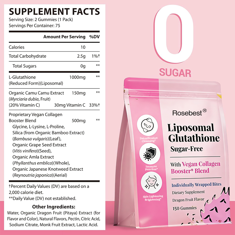 Gummies blanchissantes pour la peau au goût naturel de fruit du dragon, avec L-Glutathion, Collagène et Vitamine C, fabrication OEM en Chine, marque privée