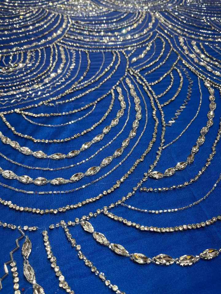 Tissu en dentelle à sequins et motifs à pois respirant, prix d'usine en Chine, polyester/métallique bleu, matière pour robe de mariée, prix raisonnable